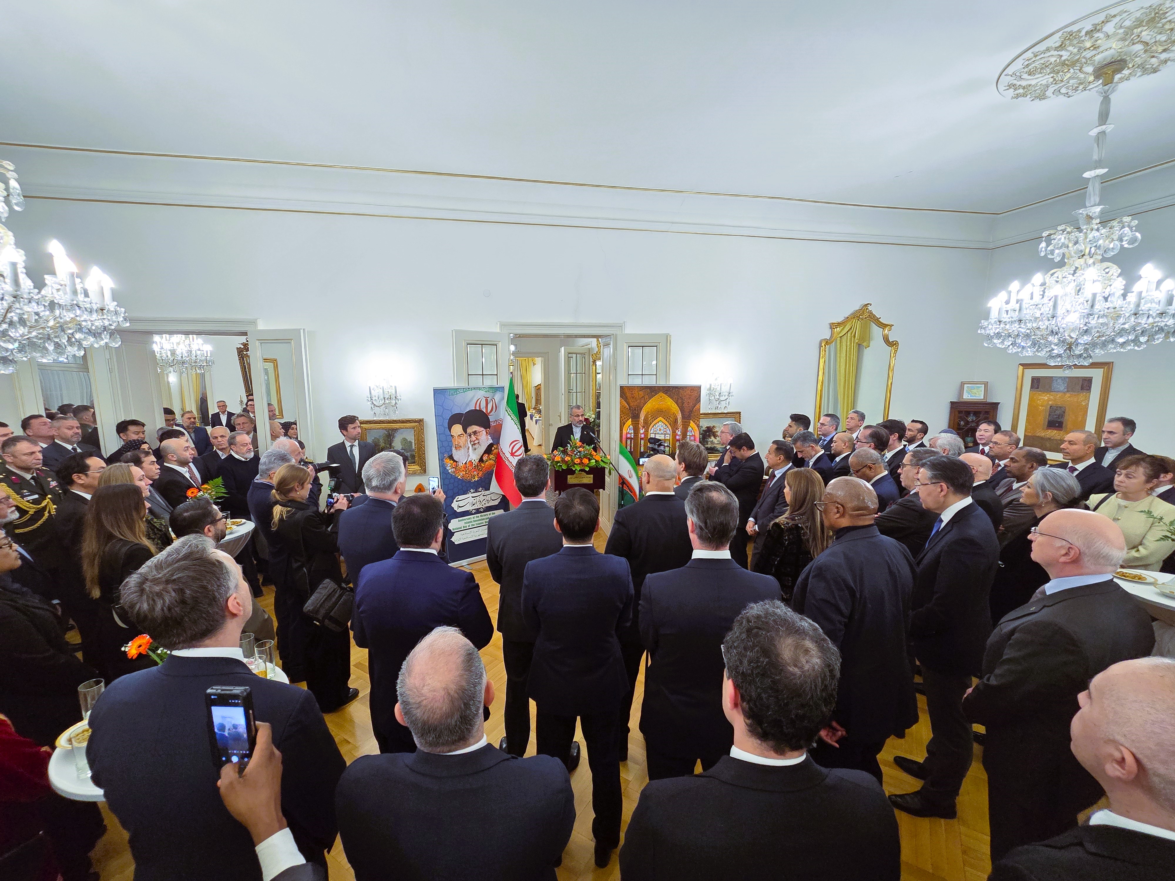 Diese Veranstaltung zum iranischen Nationalfeiertag fand am Mittwoch, dem 11. Februar in der Botschafter Residenz in Wien statt, an der zahlreiche Mitglieder des Wiener diplomatischen Korps teilnahmen.